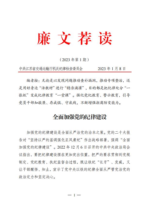 2023年廉文荐读第1期——全面加强党的纪律建设