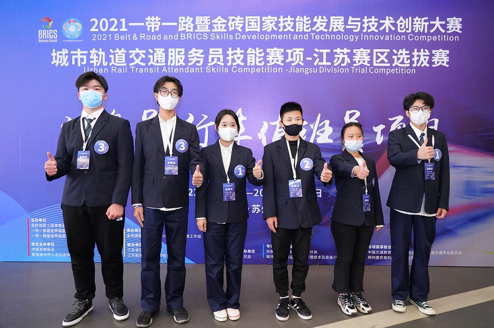 城轨交通运营管理专业2个学生团队在2021一带一路暨金砖国家技能发展与技术创新大赛城轨交通服务员江苏省选拔赛中,均获得省赛三等奖!其中,站务员赛项团队获第四名,顺利晋级国赛集训队;行车值班员赛项团队获第五名。