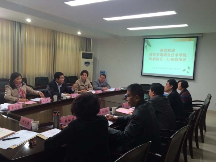 10月30日,南京交通职业技术学院张毅院长携项目组主要成员,来我校就中高职衔接道路桥梁工程技术专业课程体系项目建设进行了研讨。会议由我校陆春其校长主持,学校党委书记李虎致欢迎词。课题组负责人南京交院张毅院长做了项目建设动员的重要讲话,南京交院路桥与港航学院院长蒋玲介绍了课题申报及相关工作进展安排,我校交通系陈建明主任介绍了路桥专业中职衔接实施情况。