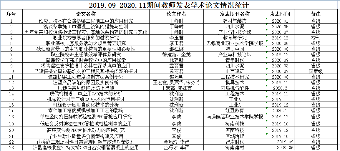 交通工程学院2019.9-2020.11论文汇总表