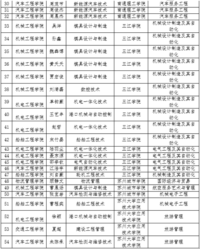 2023年江苏省五年一贯制专转本考试中,我校54名同学被南京工业职业技术大学、金陵科技学院、南京晓庄学院、三江学院、苏州大学应用技术学院、苏州城市学院、南通理工学院、淮阴工学院、南京传媒学院、南京师范大学中北学院等本科院校录取。