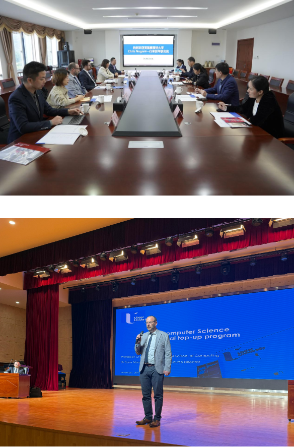 Chris院长表示期待能与我校建立紧密的合作关系。他表示,奥斯特大学一直致力于推动全球教育的多元化和国际化,双方有着共同的教育初心和目标。希望依托两校在中英两国教育、科研、文化交流等领域的丰富资源,探讨开展更加多样、更加务实的交流与合作,培养具有国际化视野的精英人才。随后,Chris Nugent院长一行还专门给部分学生作了奥斯特大学基本情况的宣讲。