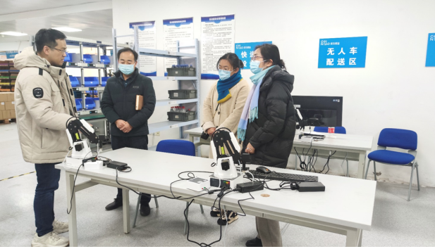 调研中,第一站首先参观了江苏经贸学院的智慧物流产教融合基地,先后参观了菜鸟物流实际运营平台、智能云仓、仓储配送虚拟仿真平台等实训项目,从生产性实训功能、科研中试功能、社会培训及技术技能鉴定功能到创新创业进行认真的参观学习。