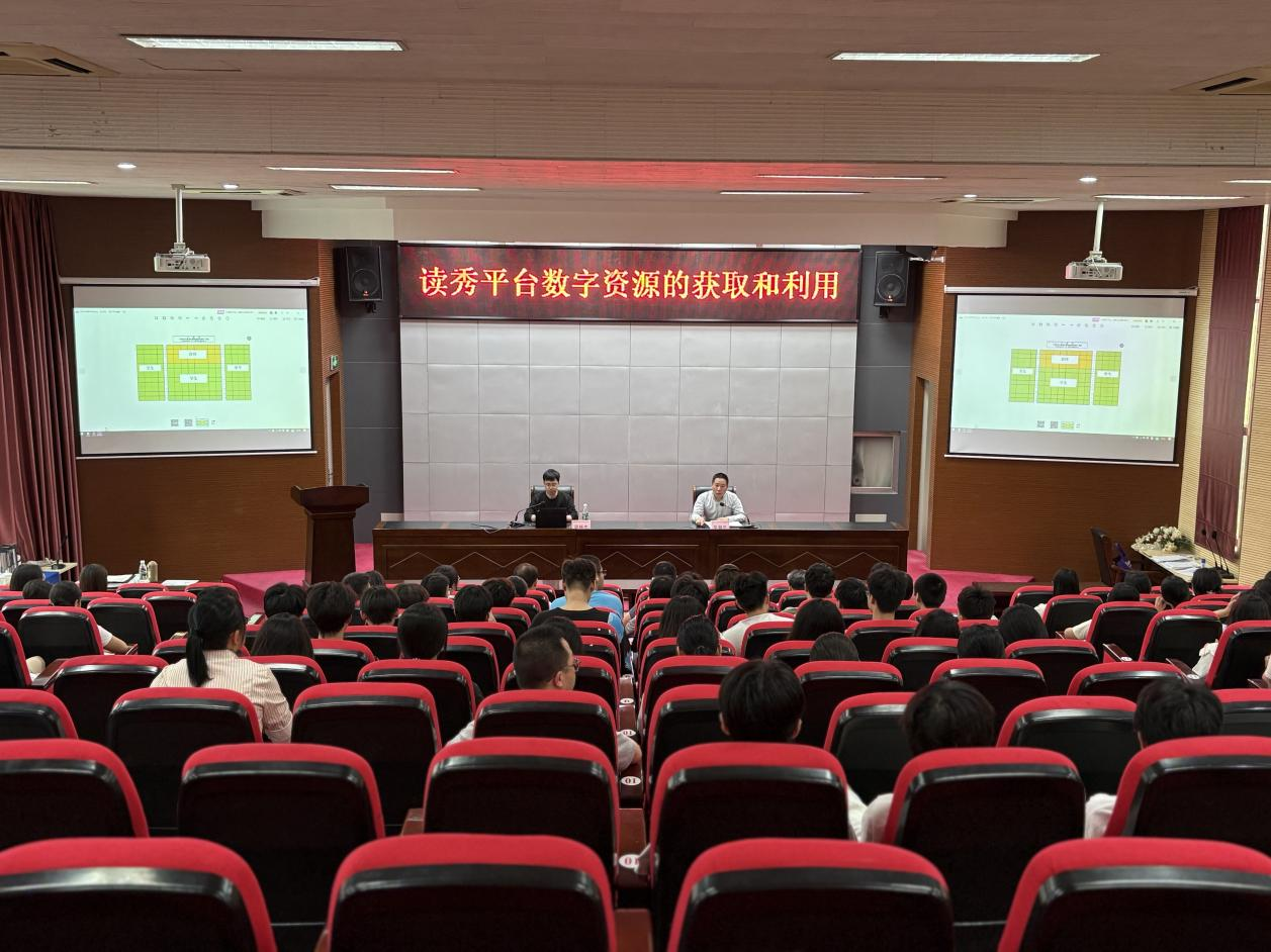 为深化数字资源服务效能,提升师生信息素养水平,5月14日下午,学校图文信息中心在学术报告厅成功举办“读秀平台数字资源的获取和利用”专题培训讲座。本次讲座由图文信息中心副主任巫海平主持,特邀超星集团南京分公司周秭杰讲师担任主讲嘉宾,来自各院部的专任教师、科研骨干及学生代表共计150余人参与学习。